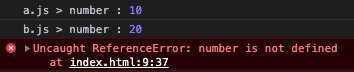 위의 코드와 같은 상황에서 type="module" 속성을 추가해 주었다. 그 결과 해당 파일의 number 들은 각자의 스코프로 사용되기 때문에 index.html 파일에서 number는 정의되지 않은 상태로 출력되게 된다.