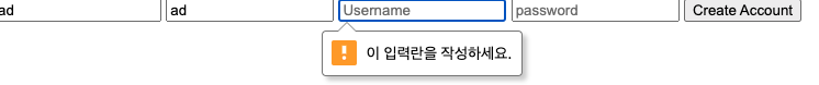 input 태그에 "required" 라는 속성을 추가해주면 "submit" 버튼 클릭 시 모든 칸들의 작성이 완료되었는지 확인해준다.