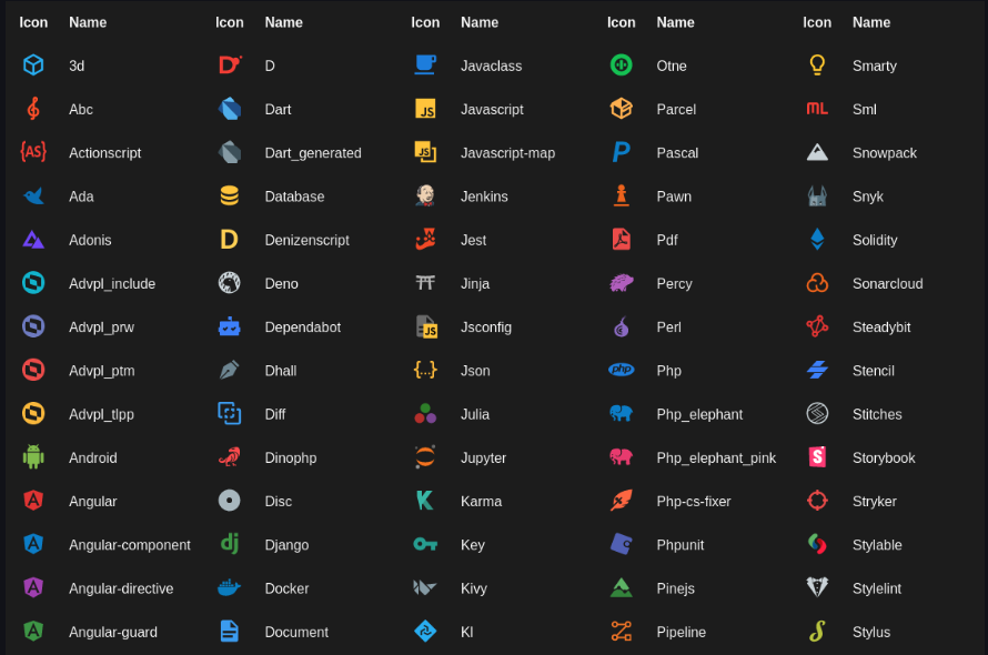 파일에 형태에 따라서 아이콘 모양이 나타나는 익스텐션이다. 위의 예시에 나타나는 아이콘 이미지 외에도 굉장히 다양한 파일들 및 폴더에 대해 지원이 되고 있어 파일 아이콘만으로 구분하기가 쉽다.