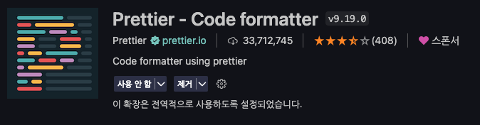 Prettier는 코드를 저장할 때 해당 코드를 자동적으로 정렬해주는 익스텐션이다. 여러 사람이 협업을 할 경우 코드의 정렬이 달라 알아보기 힘든 경우도 있고, 실수로 html의 닫힘태그를 빼먹는 등의 실수를 할 수 있다. 그럴 때 아주 요긴한 익스텐션이다.